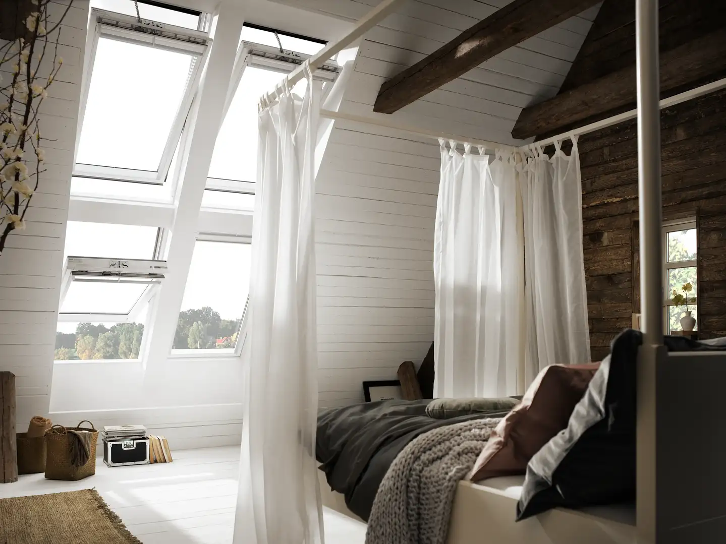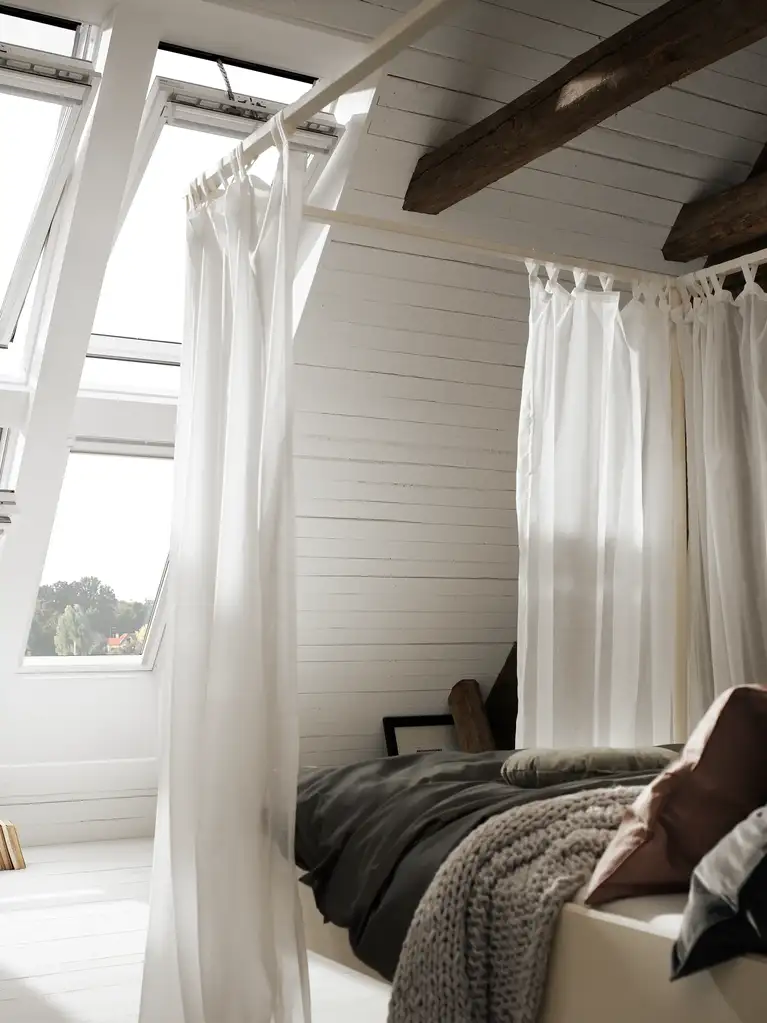 Sie möchten nicht auf schmeichelndes Tageslicht verzichten? Installieren Sie VELUX Dachfenster unter Dachschrägen und Flachdach-Fenster in Anbauten, um von der stimmungsaufhellenden Wirkung des Tageslichtes zu profitieren. Schließlich geht nichts über den natürlichen Weichzeichner, der das freundliche und einladende Ambiente von Aesthetic-Zimmern optimal unterstreicht.