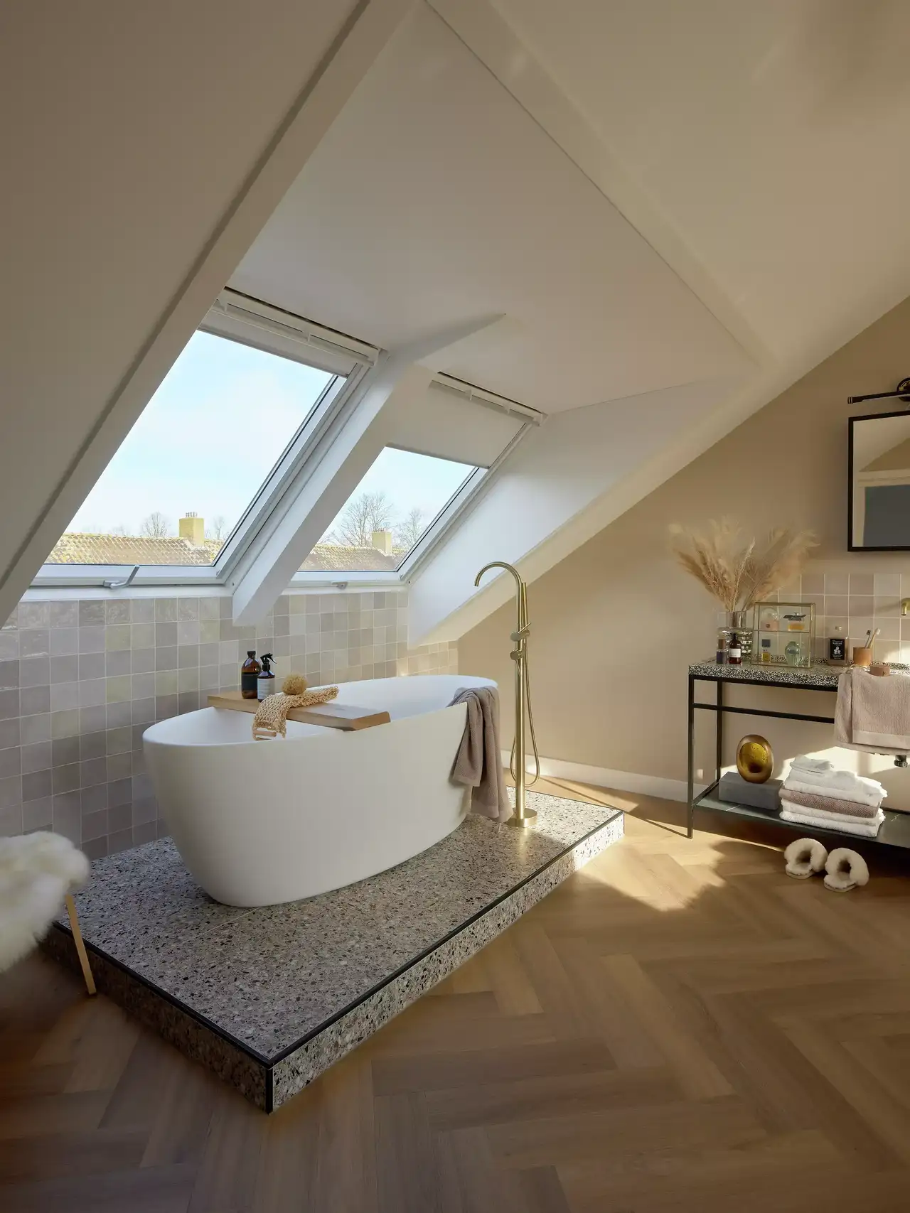 Mit Dachfenstern über der Badewanne genießen Sie während des Badens den Blick in den Himmel.