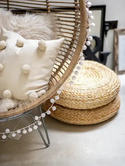 • Naturmaterialien: Holz, Rattan, Leinen, Bio-Baumwolle und Ton verleihen dem Raum Wärme und Erdung.