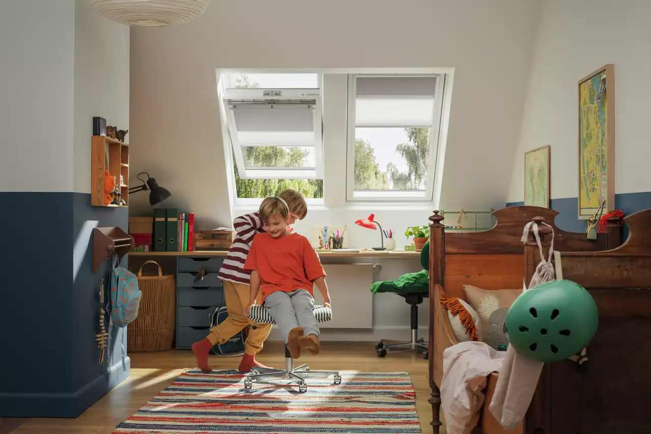 Die VELUX Lichtlösung "3 in 1" flutet das Kinderzimmer mit Tageslicht und bietet eine beeindruckende Panorama-Aussicht.
