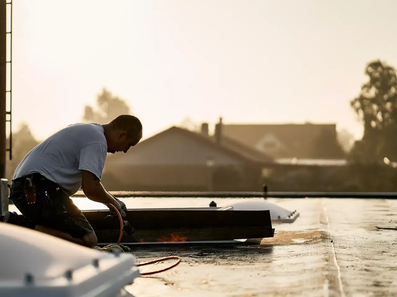 Eine Flachdach-Wartung beugt undichten Stellen im Dach vor