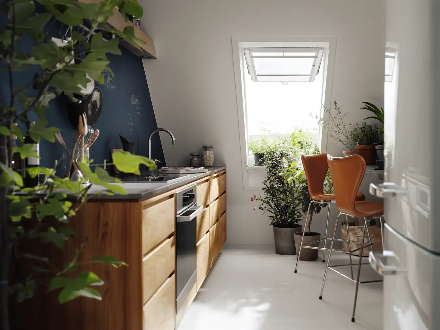Der Stil eignet sich ideal für Wohnräume unter dem Dach, in denen viel Tageslicht einfließt – etwa über große Dachfenster.