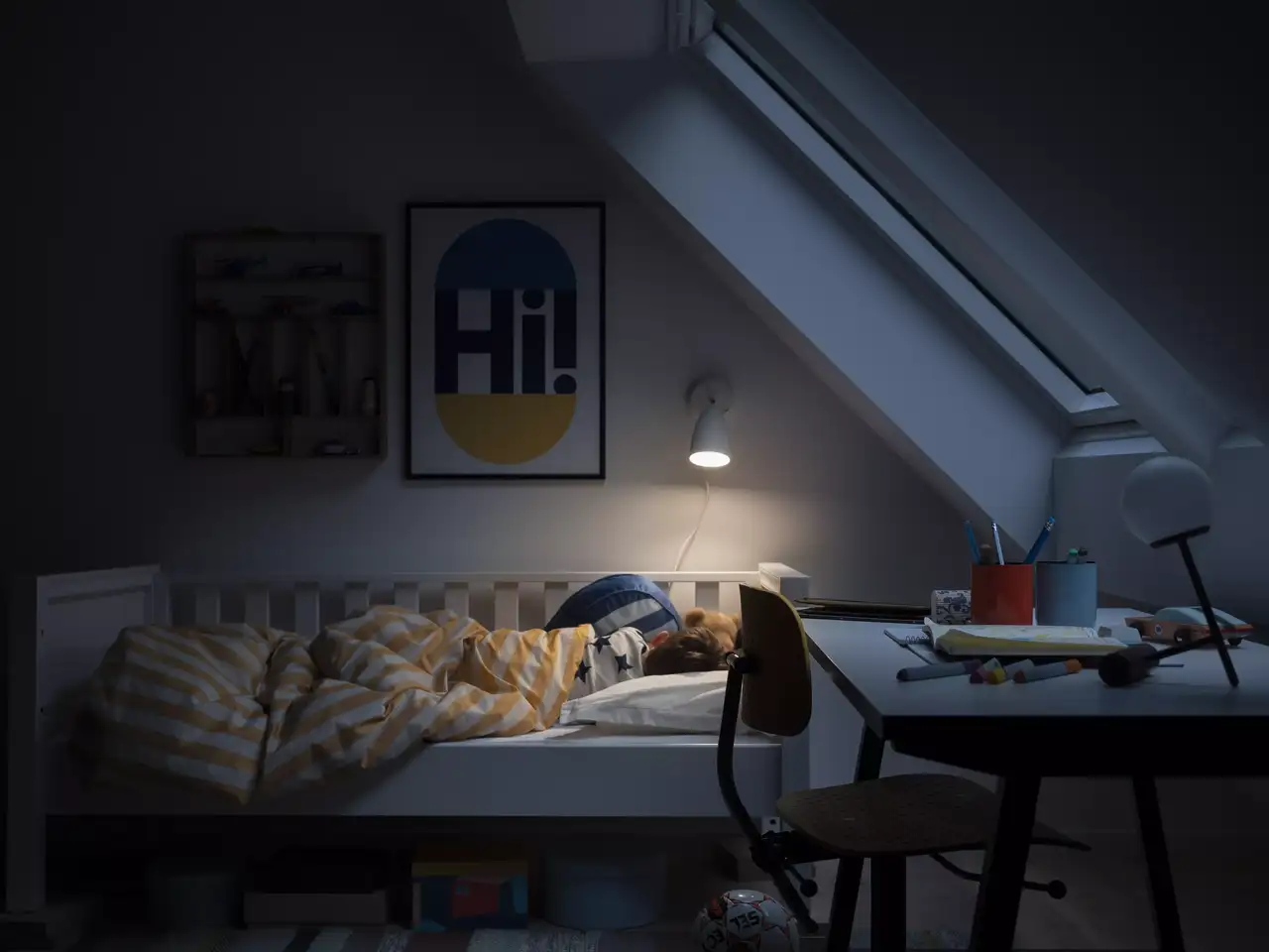 Licht hingegen wirkt genau andersherum: Es führt dazu, dass der Körper aktivierende Hormone wie Serotonin ausschüttet. Beim Aufstehen sollten Sie daher die Räume mit Licht fluten, um das Aufwachen zu unterstützen. Wer elektrische oder solarbetriebene Varianten nutzt, kann für Rollo oder Rollladen per App über das Smartphone auch feste Öffnungszeiten festlegen. So kann schon Minuten, bevor der Wecker klingelt, Tageslicht ins Haus gelassen werden und das Kind wacht sanfter auf.